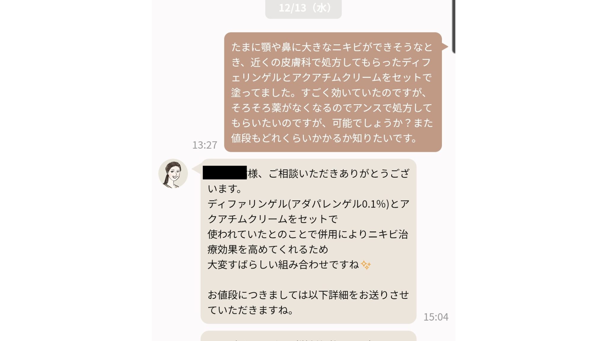 ちょっとした肌の違和感から新しい薬の相談まで、スキンケアに関することなら何でも聞けますし、必要であればそのまま医師の診察予約まで案内してもらえるので、想像以上に使い勝手がいいです。