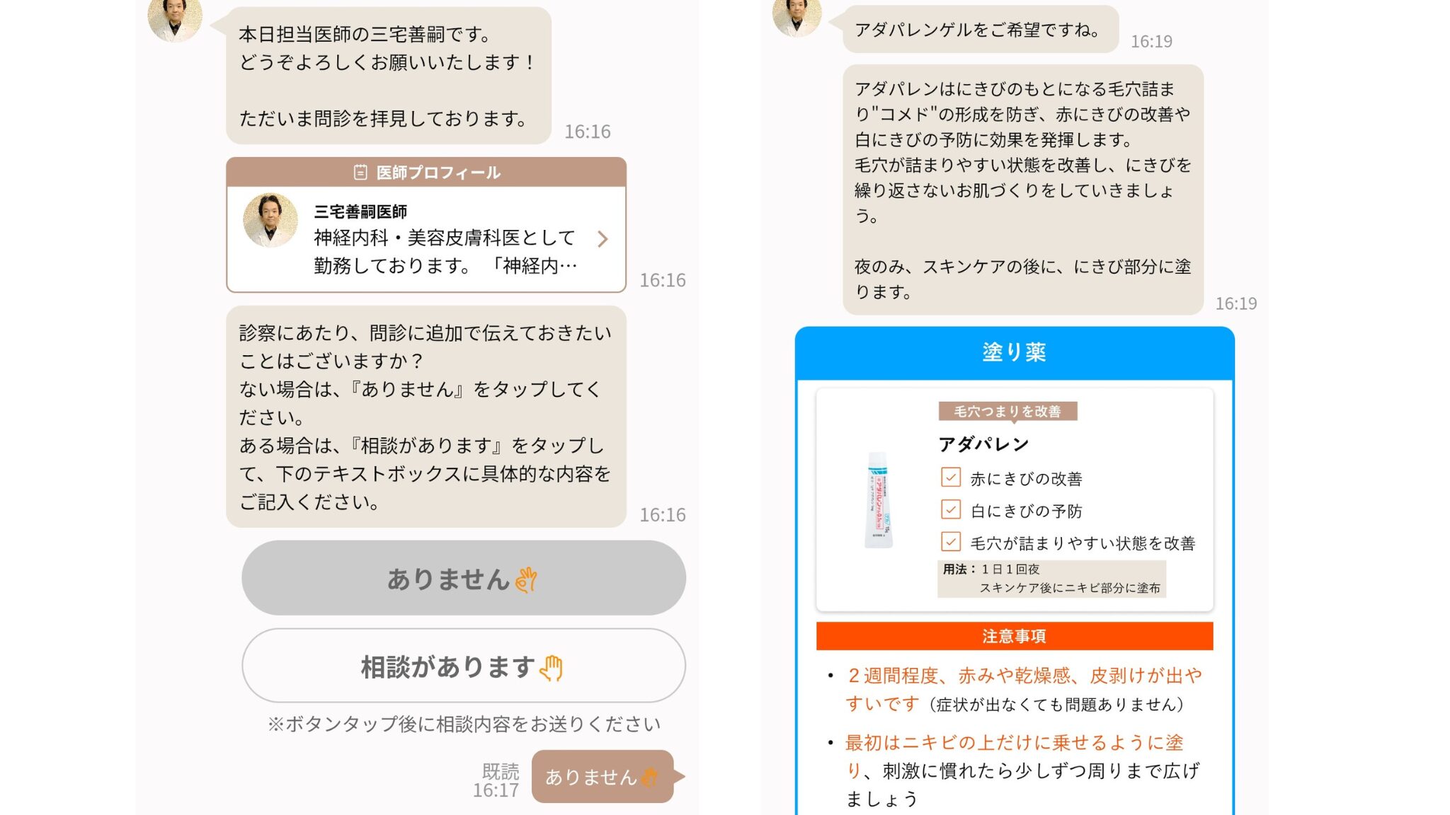 書類と写真の送信が終わると、ほどなくして医師からメッセージが届き、診察が始まります。