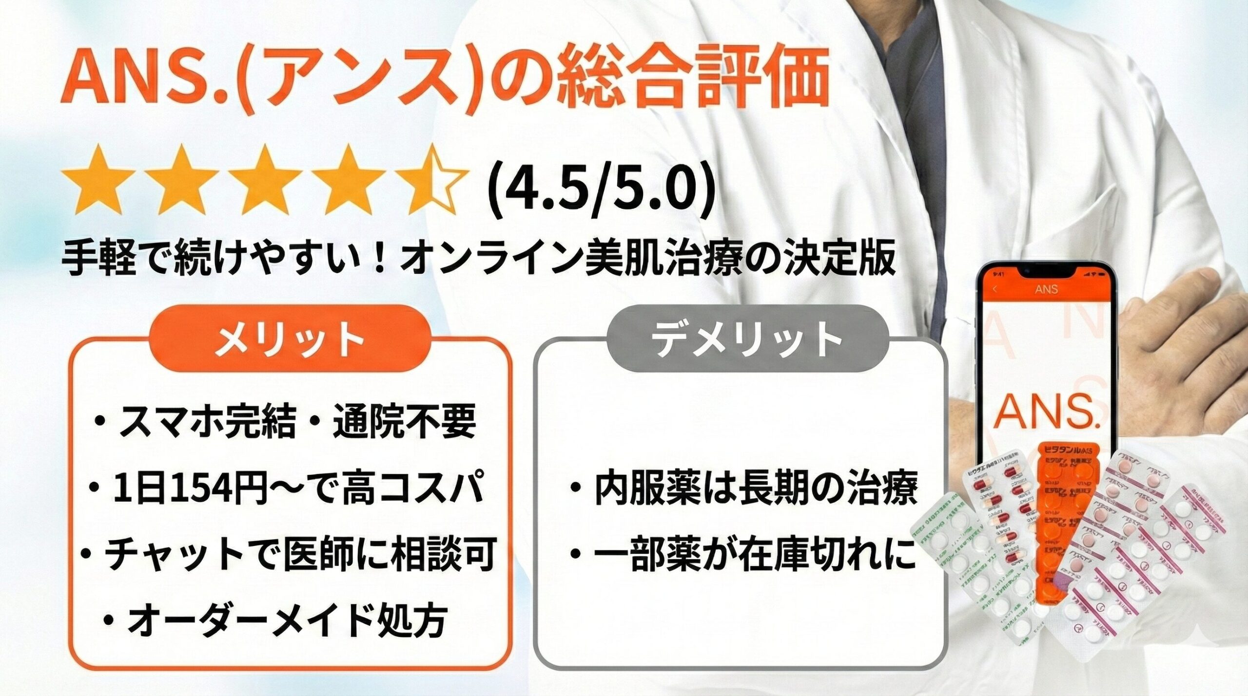 本記事では、ANS.(アンス)のオンライン診療の口コミや怪しいという噂について、2年間利用し続けている私が本音で解説していきます。