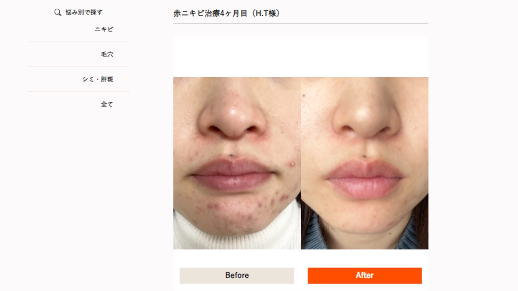 まずはANS.(アンス)のニキビ治療の口コミは悪いのか、実際の症例写真を確認していきたいと思います。