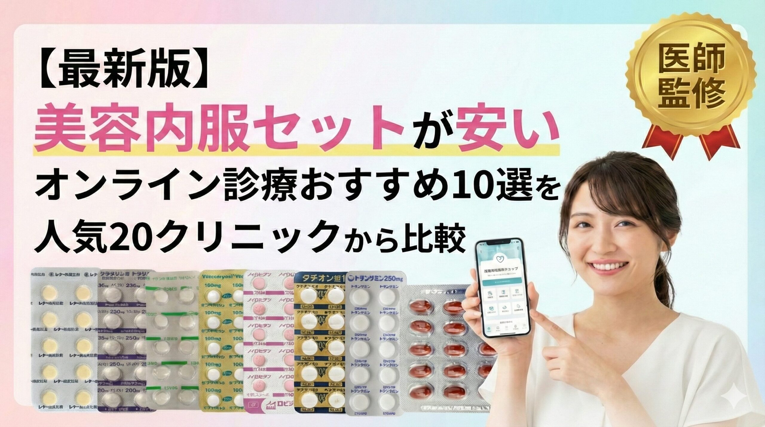 というわけで本記事では、美容内服セットが安いオンライン診療おすすめ10選について、人気の20クリニックから比較してお伝えします。