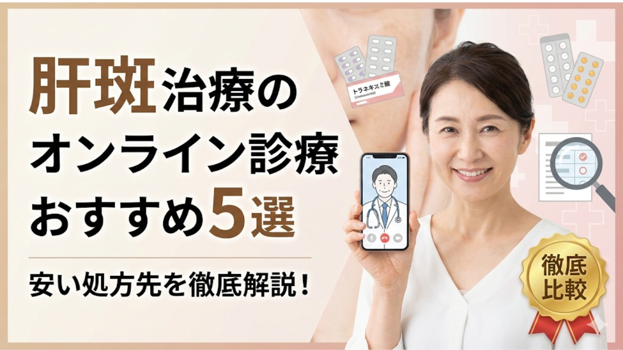 この記事では、肝斑治療に特化したおすすめのオンライン診療5選を徹底的に比較し、安く安全に処方してもらう方法を解説します。