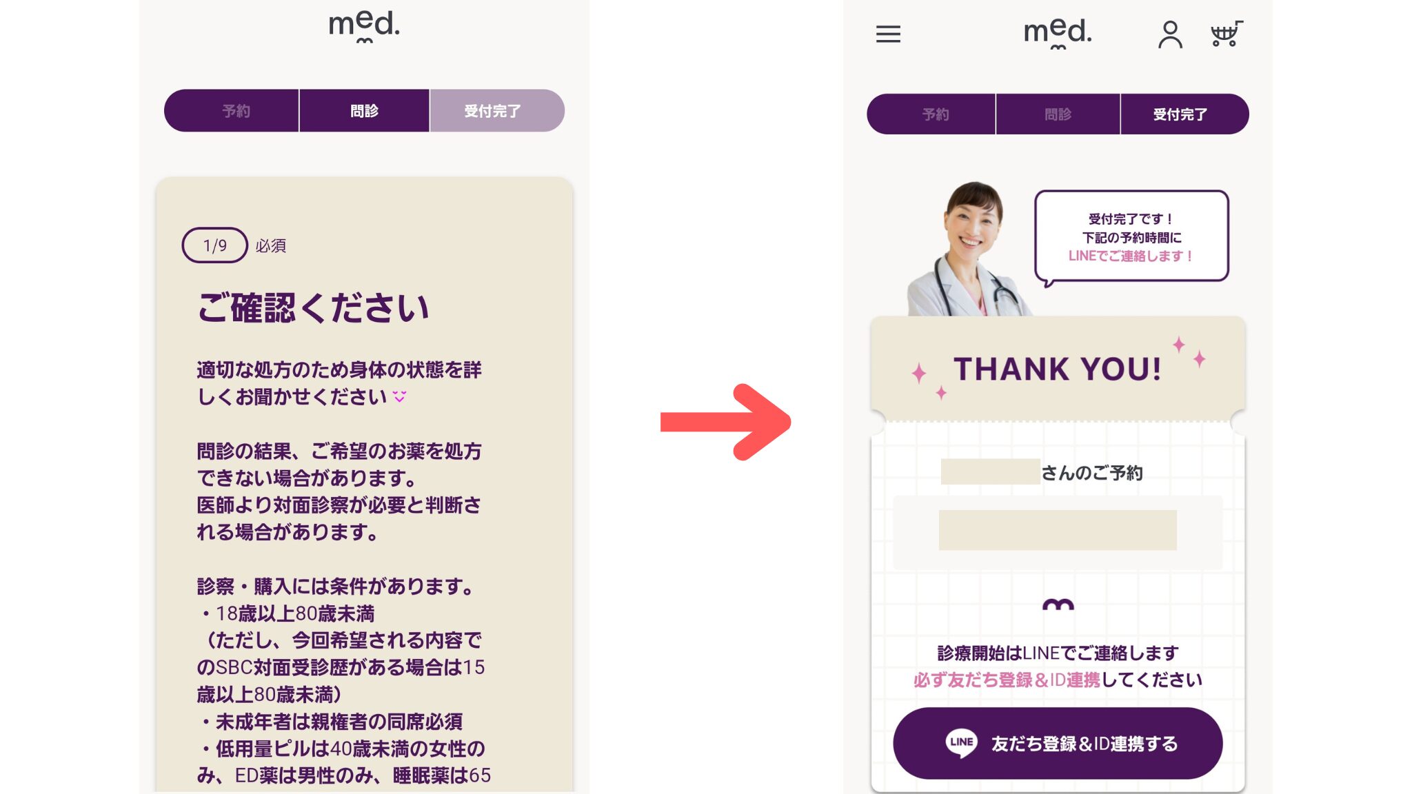 そしてこの問診が終われば、メッドのLINEを追加して事前準備は完了です。