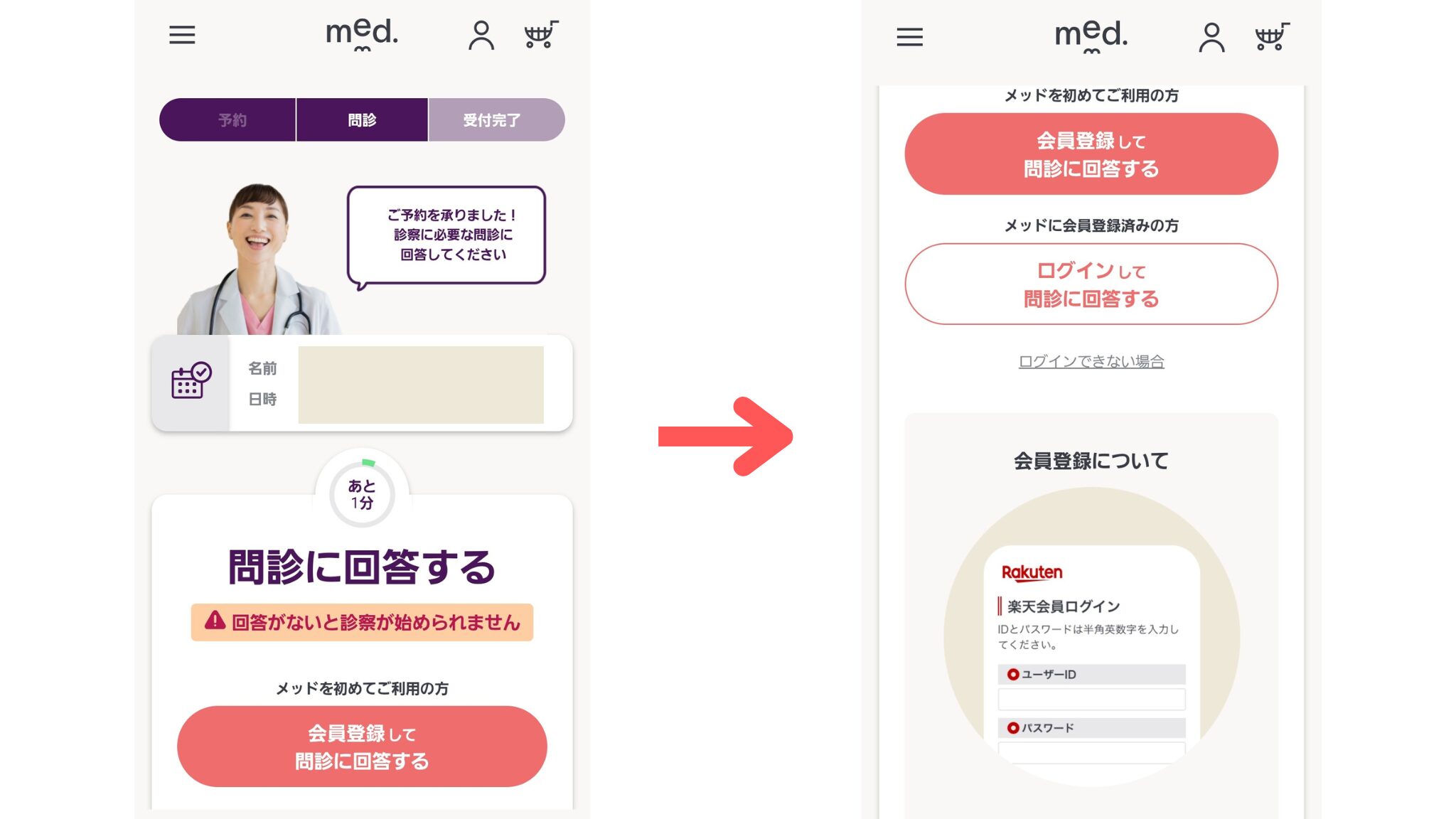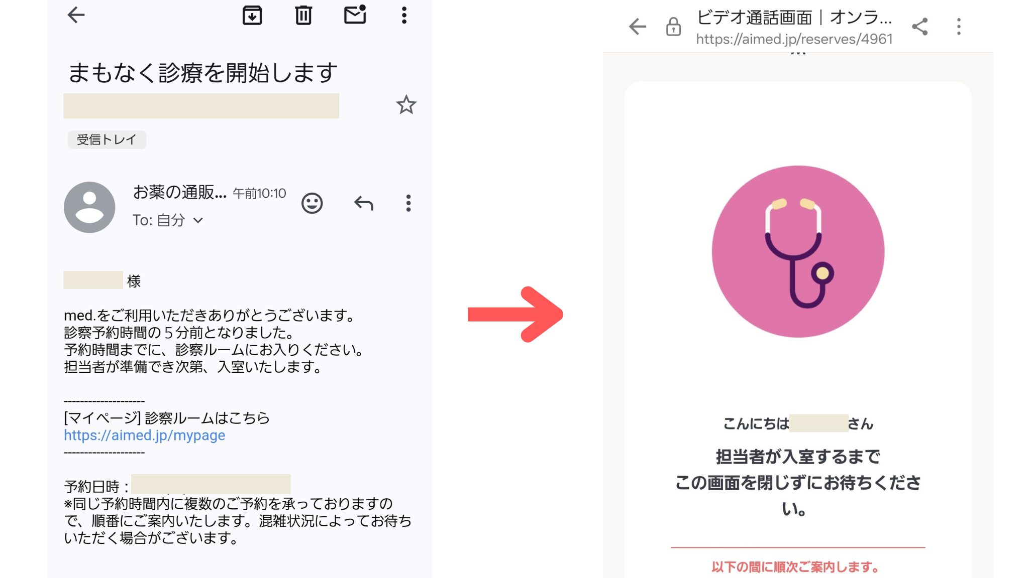 そしてそのメールからメッドの診察ルームに入る感じですね。