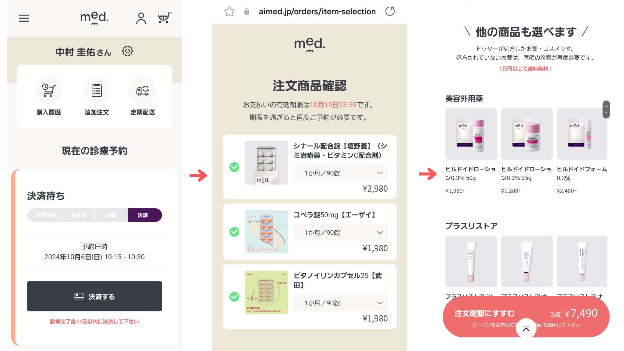 さらに処方された薬を全部注文する必要はなく、決済画面で選ぶことができたり、追加の外用薬を購入することもできるため、その辺の配慮も良いなと思いました。