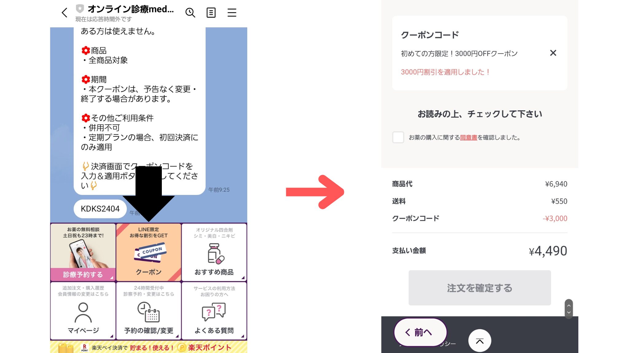 私の口コミ④:診察後に決済リンクから注文確定
