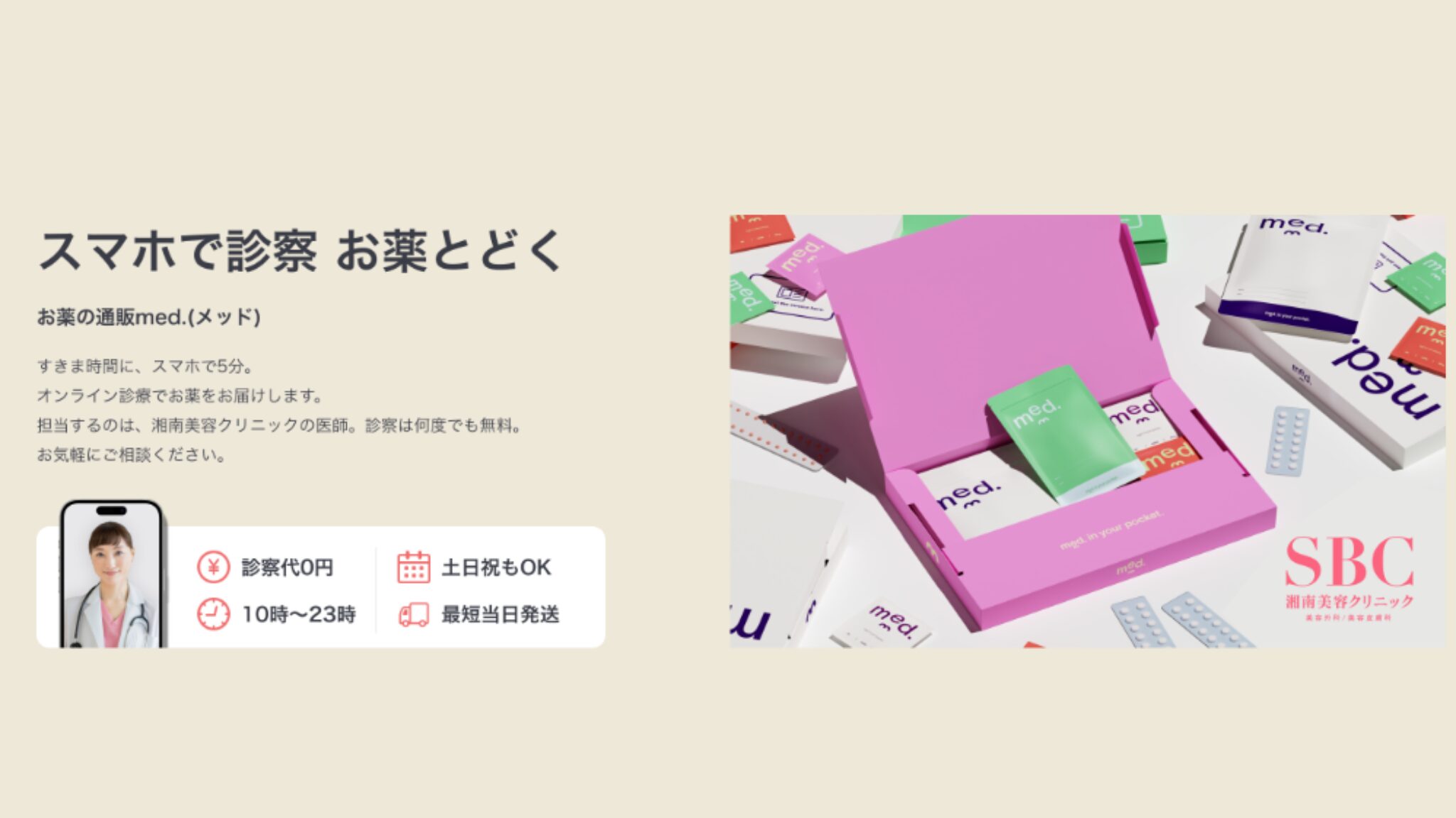 先に結論をお伝えすると、med.(メッド)はSBC湘南美容の医師が診察してくれるので非常に信頼でき、値段も比較的安くて使いやすいサービスだということが分かりました。