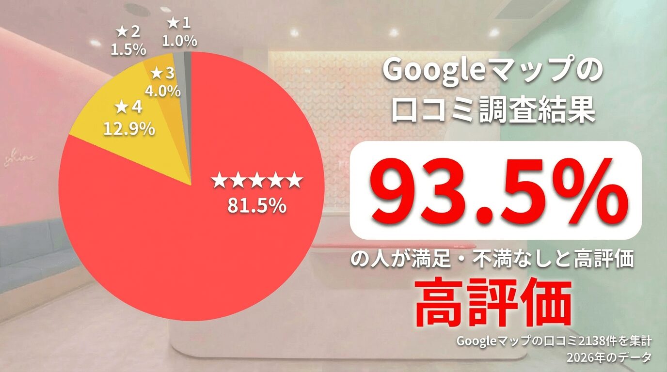 施術内容、料金面、接客面ともに良い口コミが多く、安心して通える高評価なクリニックです。