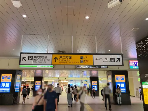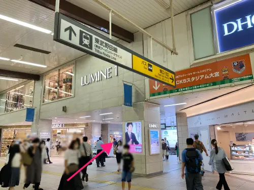 左手にLUMINE1を見ながら、東口(北)の出口へ向かう階段を降ります。