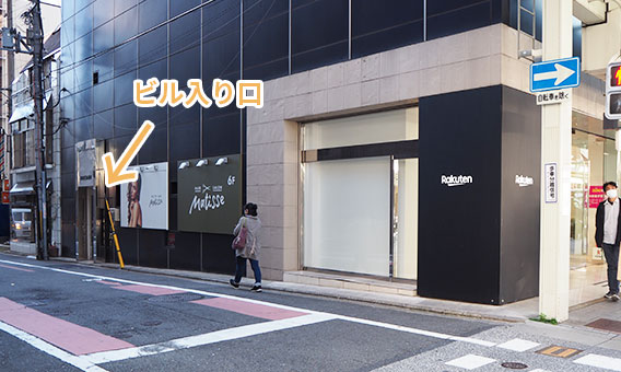 右折するとすぐにビルへの入口がありますので、エレベーターで4Fへお越しください。