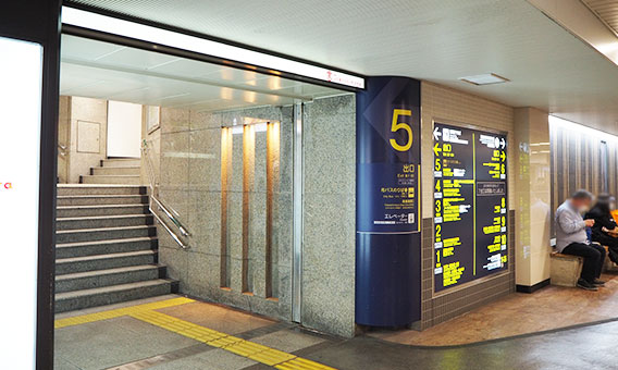 ②阪急「烏丸駅」から18番出口の方へ100mほど直進すると15番出口がありますので、そこから地上に出ます。