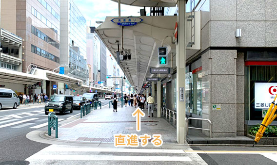 ③15番出口を出ると横断歩道を挟んで右側に「三菱UFJ信託銀行」がありますので、