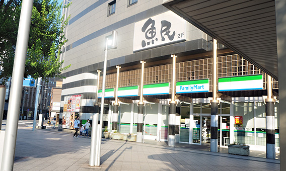 ②A3出口を出ると、右手に「ファミリーマート」が入ったビルがありますので、そのまま直進します。