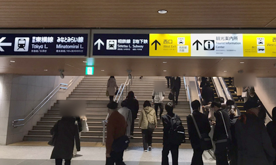 ①改札を出て西口を目指します。