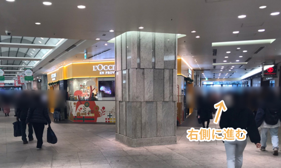 「ロクシタン」がある分かれ道がありますので、右側に進みます。