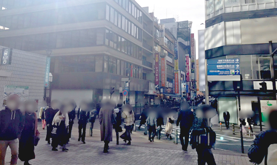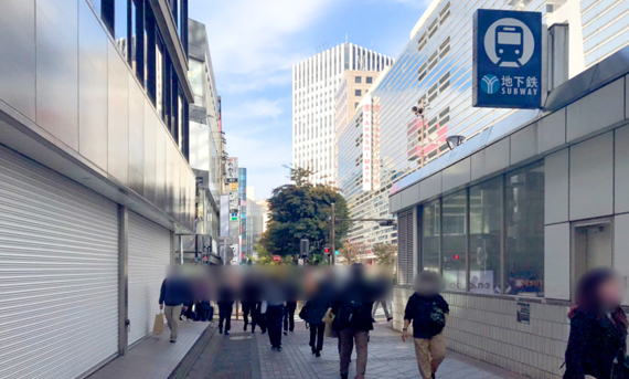 地下鉄の入口とビルの間を通過します。