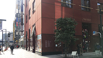 ③直進していると、赤い建物の資生堂パーラーがございます。その前を通過し直進してください。