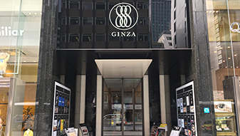 ④そのまま進むと、銀座888ビルに到着します。黒の光沢がある建物です。