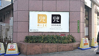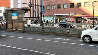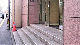 ③クリニックのある4Fへはロゴの看板から見て、左手にあるビル出入り口よりお上がりください。