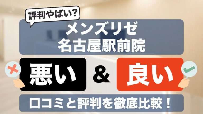 名古屋エリアにあるメンズリゼ名古屋駅前院の悪い口コミと良い口コミを調査し、口コミと評判を徹底調査しました。