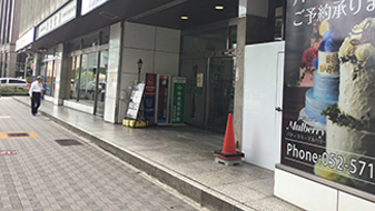⑤松岡ビル有料駐車場の隣にあるビル(桑山ビル)5階に、メンズリゼ名古屋駅前(リゼクリニック名古屋駅前院)がございます。1階のケーキ屋さんの奥にあるエレベーターでお上がりください。