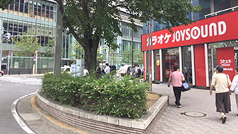 ③名駅通りに面する道は道なりに右折です。カラオケJOYSOUNDの前を通過します。