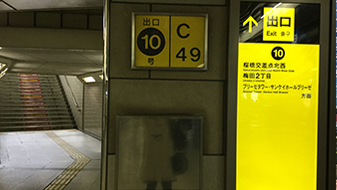 ①10番出口より地上へ上がっていただきます。