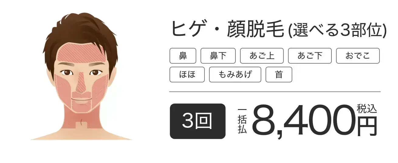 A:はい。「ライトプラン」を選べば、ヒゲ3部位×3回を総額8,400円で受けられます。
