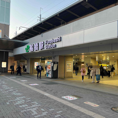 ①JR船橋駅中央口を出ます。