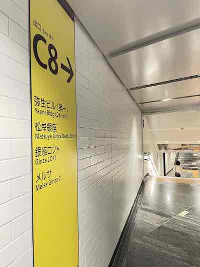 ①銀座駅C8出口を出ます。