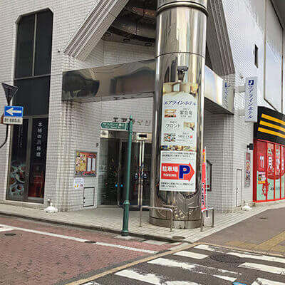 ③信号を渡って一つ目の角にあるエアラインホテルの手前で左に曲がりサンバレー通りに入ります。