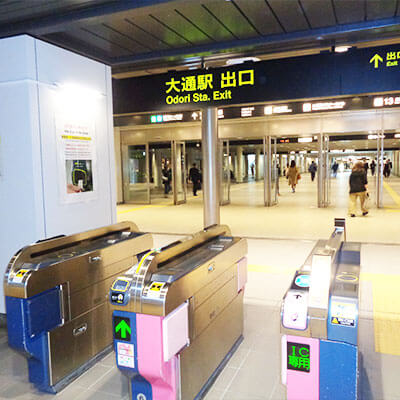 ①東豊線・南北線・東西線大通駅7番出口を出て、地下歩行空間へ進みます。