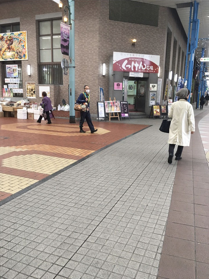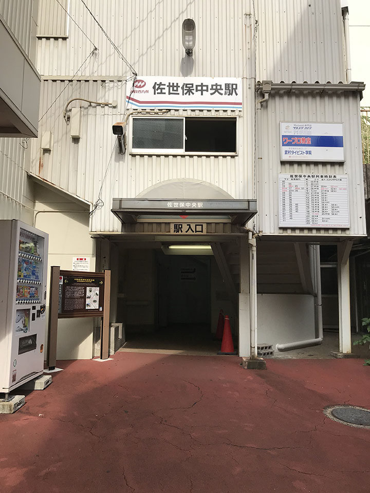 ①佐世保中央駅で降車して階段を下りて頂きアーケードまで進んで下さい。