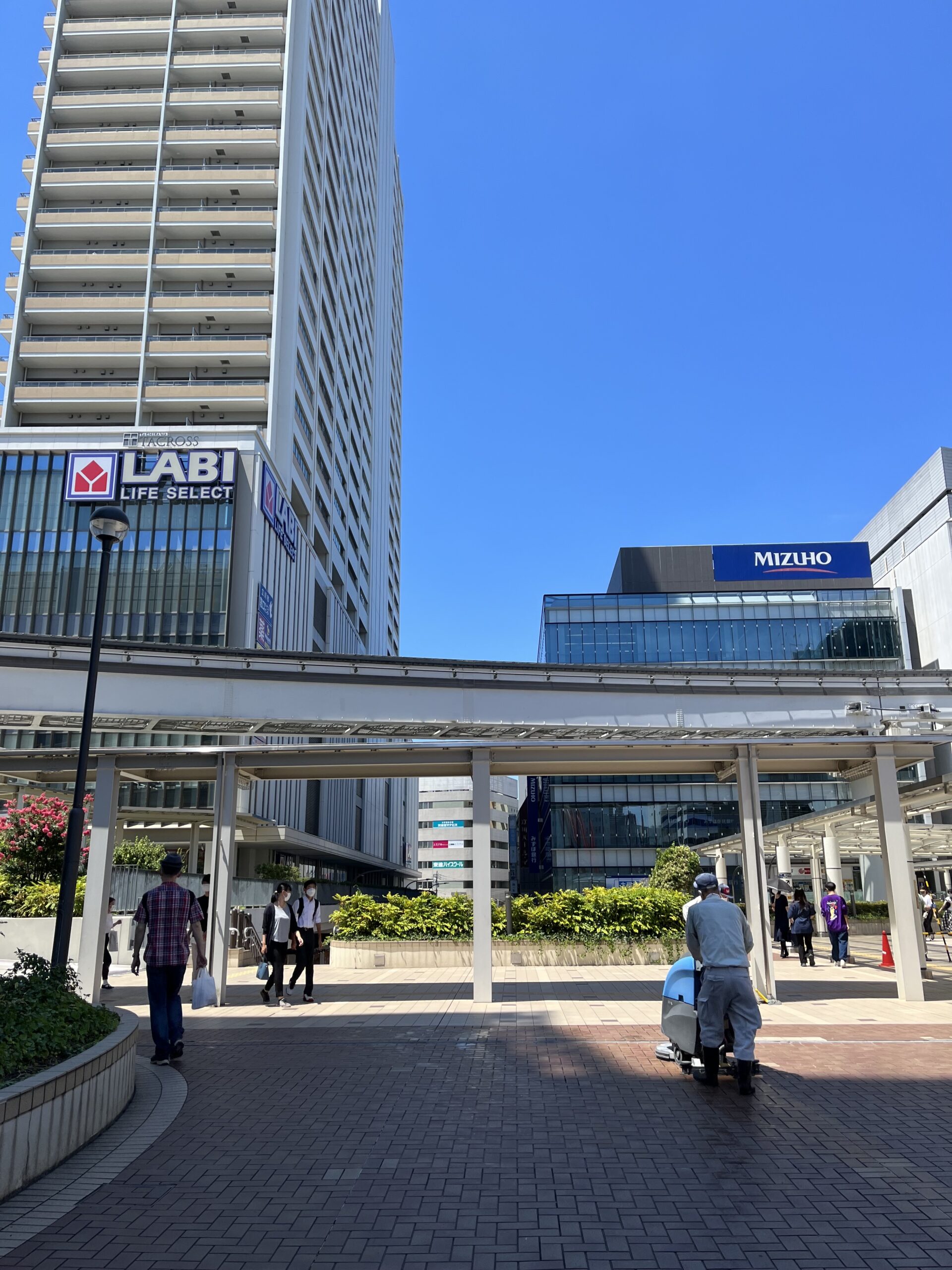 ②北口デッキを左手に進み「LABI」と「MIZUHO」銀行の間を直進します。
