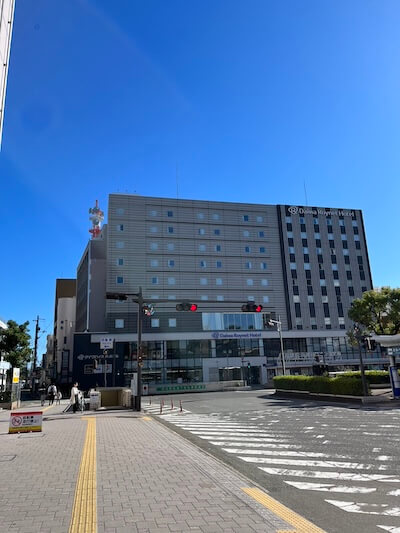 ①徳島駅で下車し駅を出たら左手の「ダイワロイネットホテル」の方へお進みください。
