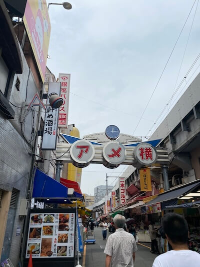 ①JR上野駅不忍口を出て、アメヤ横丁方面へ向かいます。