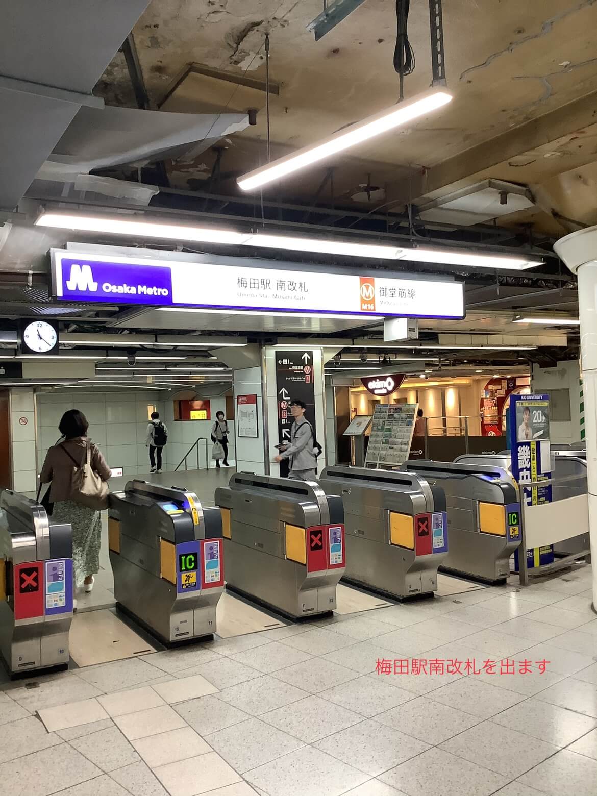 ①梅田駅南改札を出ます。
