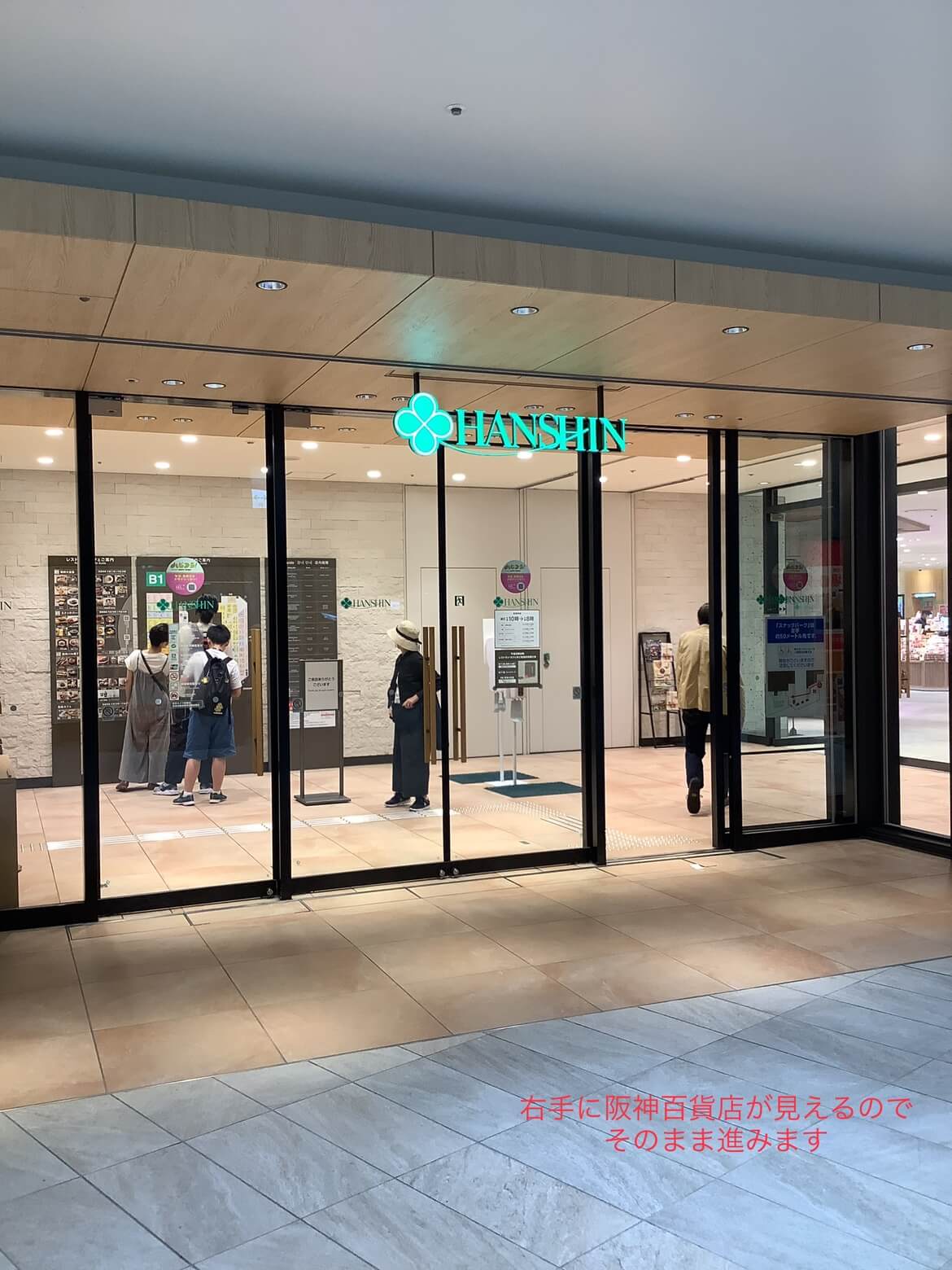 ④右手に阪神百貨店が見えてきます。さらにまっすぐ進みます。