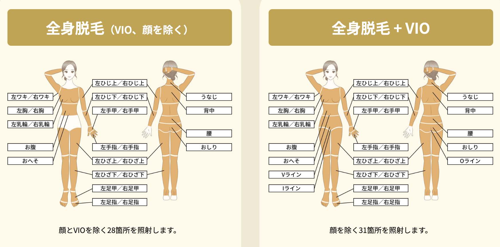 | 全身脱毛+VIO | \初回限定/ 5回:52,800円 |