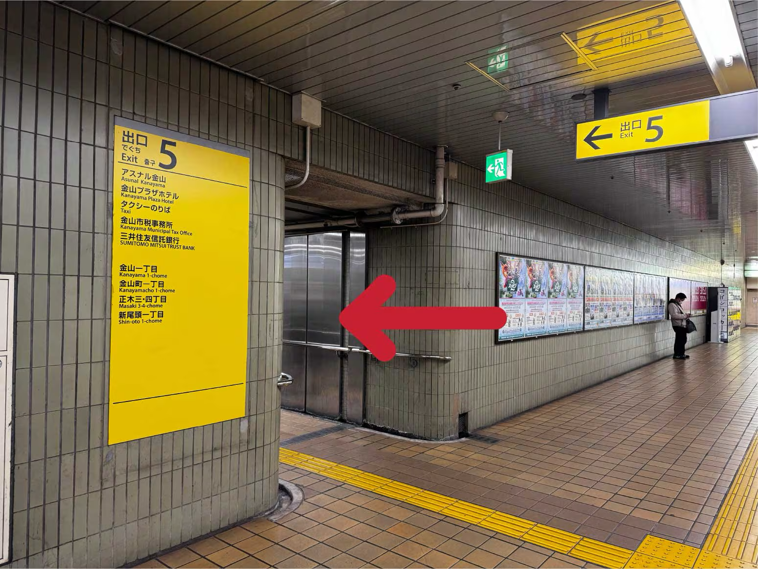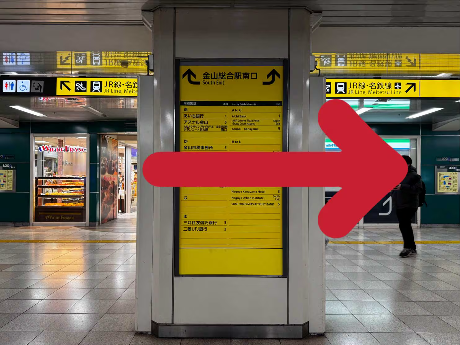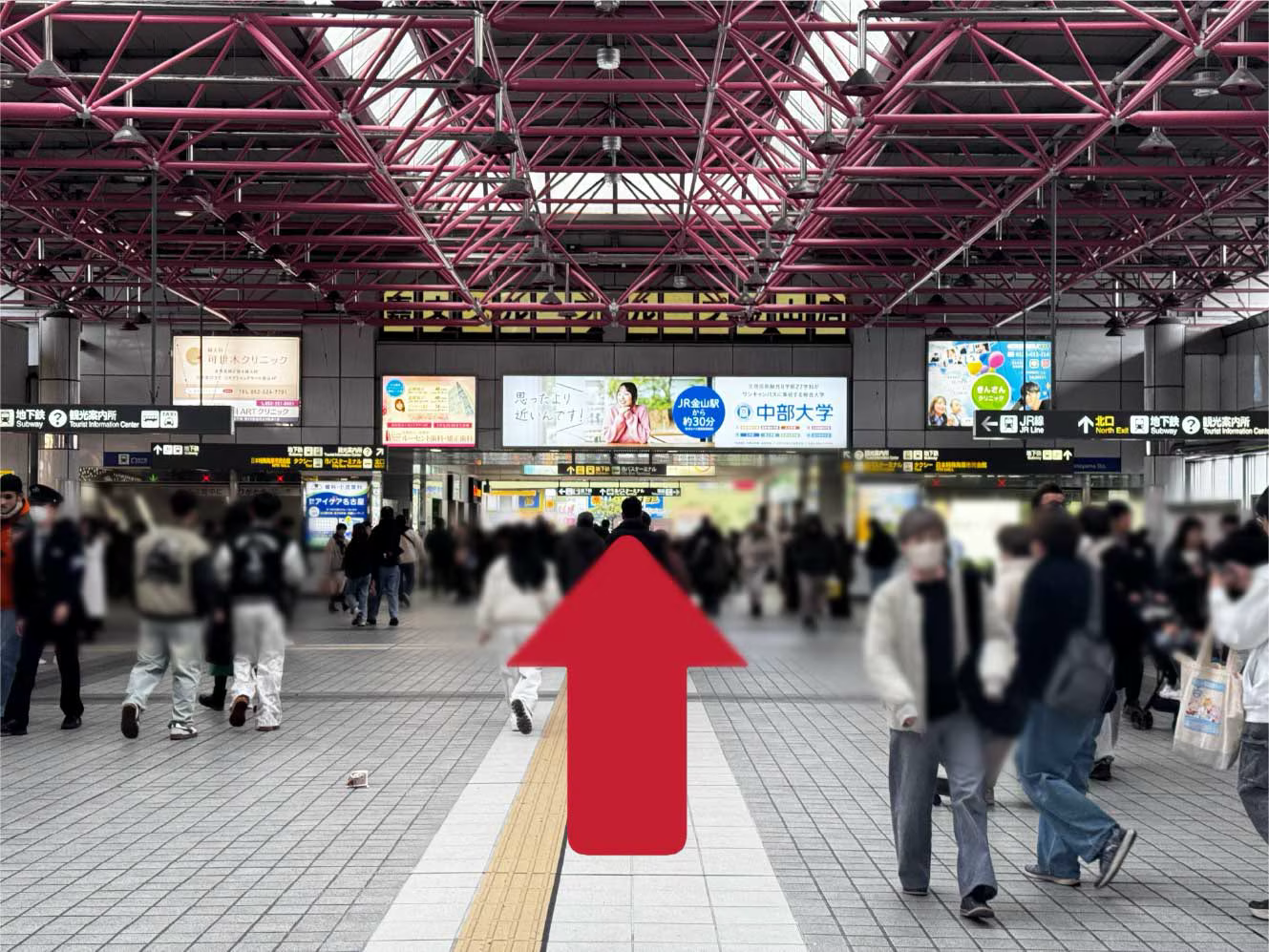 ※改札目の前のエスカレーターを上がり金山総合駅<北口>を目指していただいても構いません。