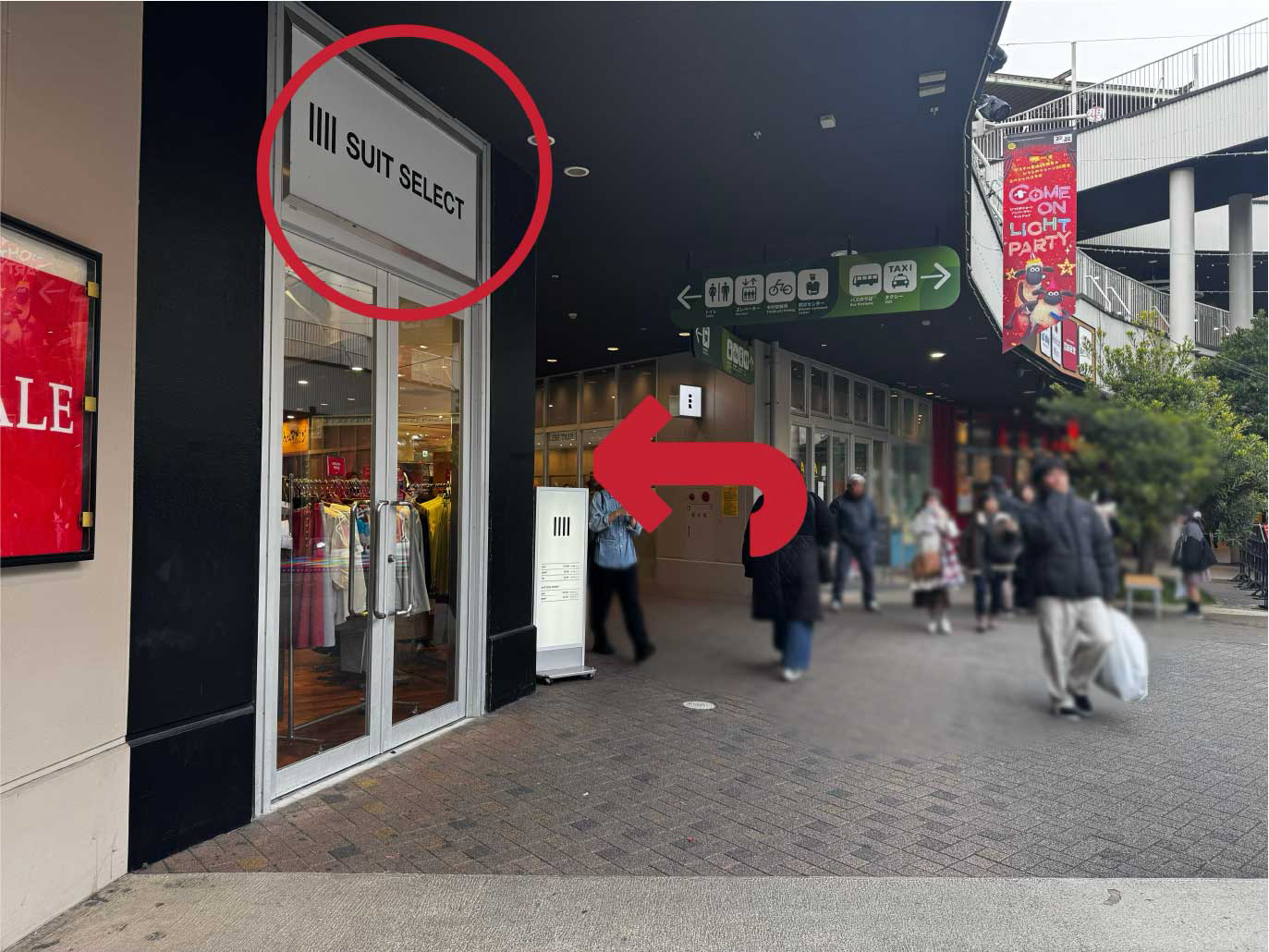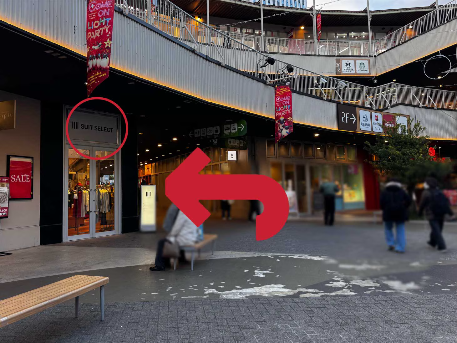 ③スーツセレクトさんと、バケットラビット(パン屋)さんの間を進みます。