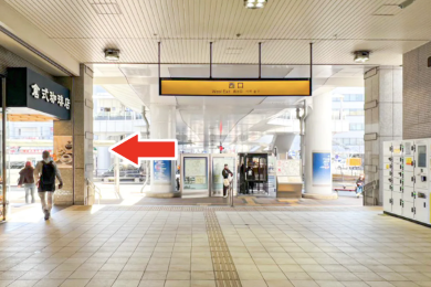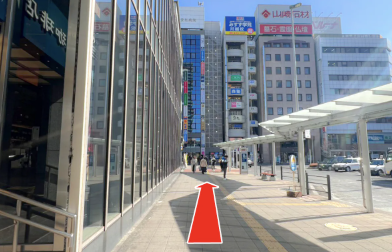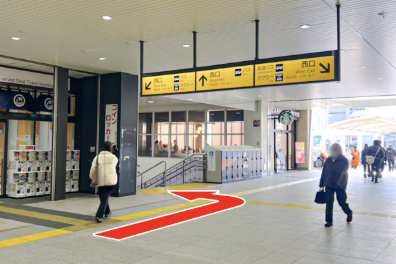 (珈琲店を左手に、バスロータリーを右手に見えていればOK)