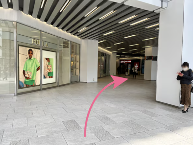 ④PARCO内には入らず、「FURLA」のショーケース沿いに、
