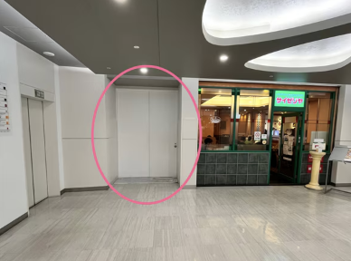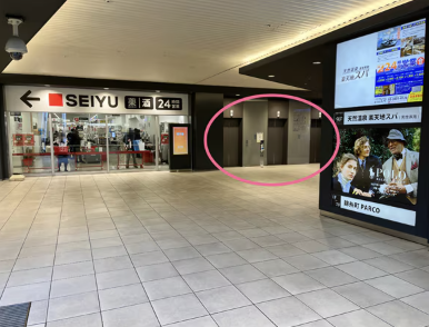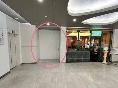 ④「SEIYU」横のエレベーターで2階までお越しください。