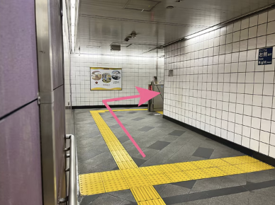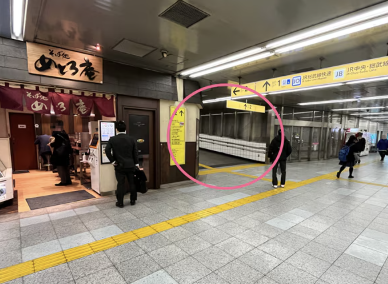 ②「そば処 めとろ庵」を左に曲がり、2番出口へ進みます。