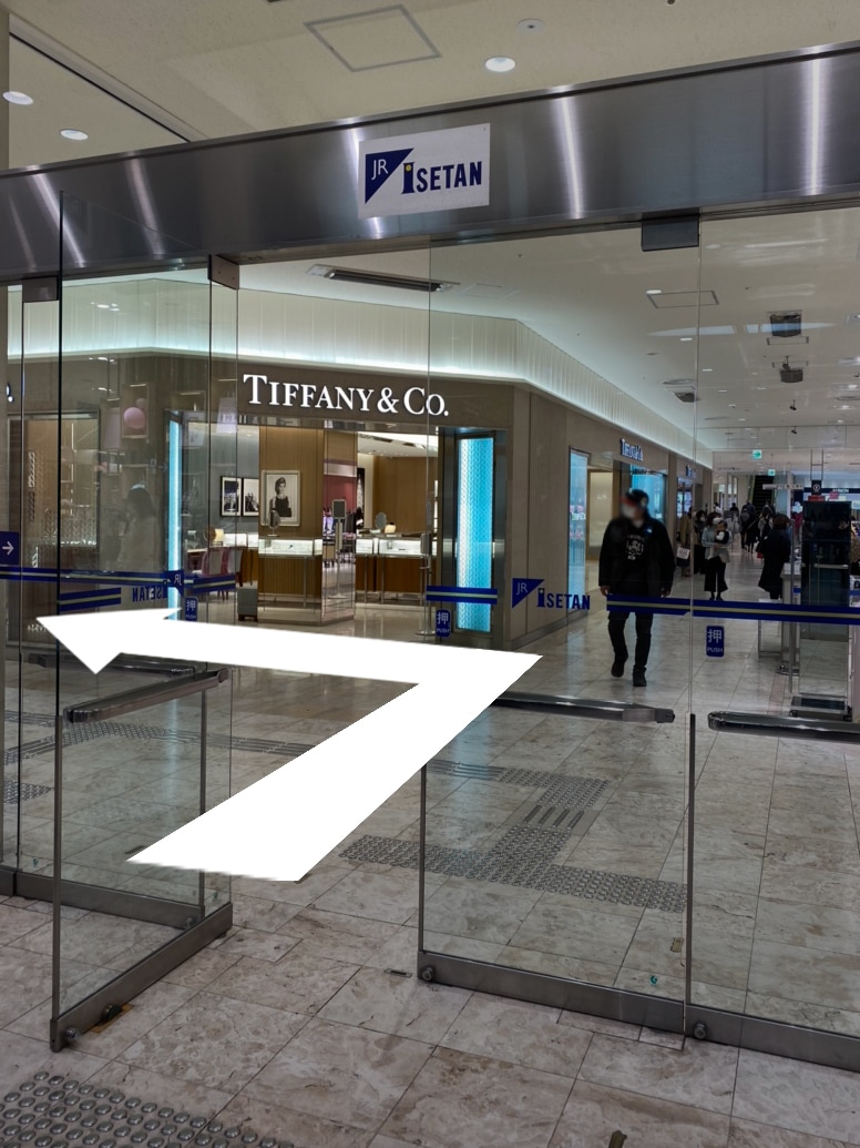 ③JR京都伊勢丹の一番左の入り口(Tiffanyの店舗が目印)から入り、そのまま左に進みます。