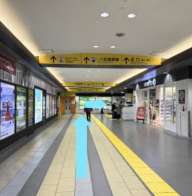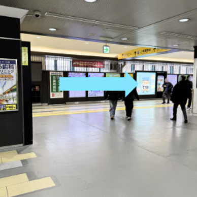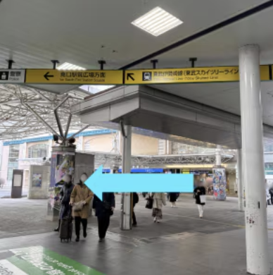 ①JR南越谷駅の改札を出て、南口駅前広場方面に向かいます。
