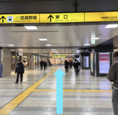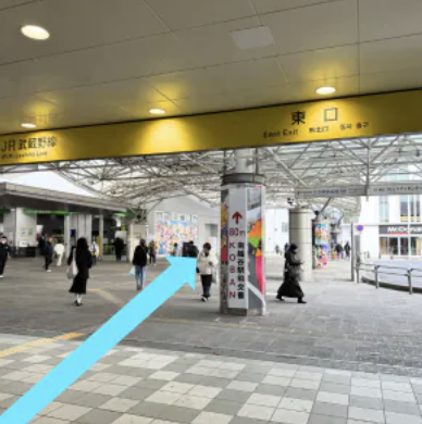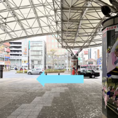 ①東武スカイツリーライン 新越谷駅の中央改札口を出て、右に曲がり東口を目指します。