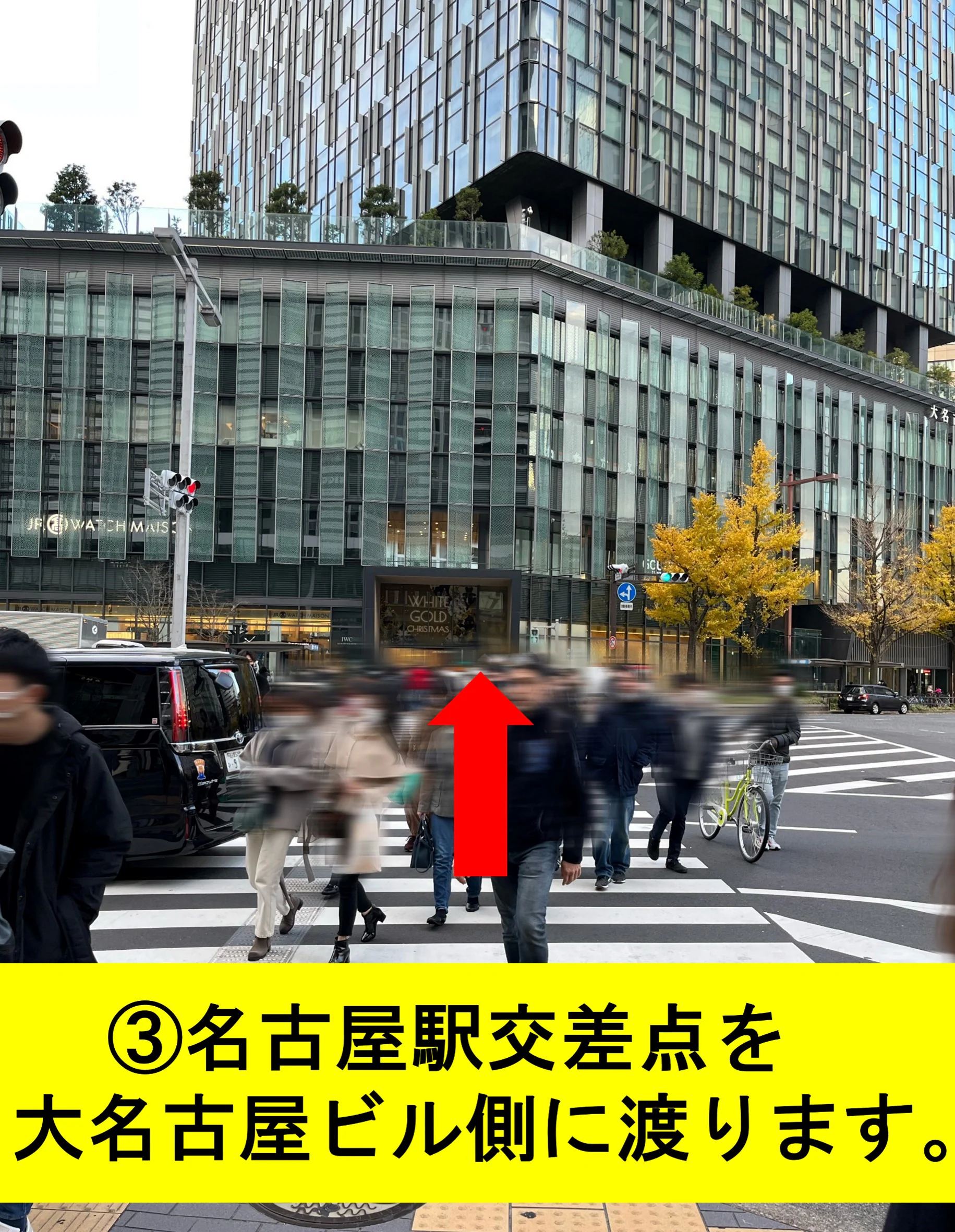 ③名古屋駅交差点を大名古屋ビル側に渡ります。