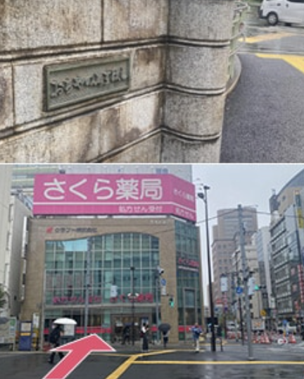 ②御茶ノ水橋を渡ると目の前にさくら薬局さんが見えてくるので、そのまま横断歩道も渡り直進します。
